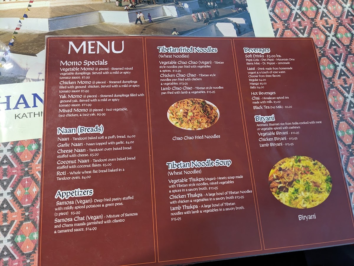 A hearty soup made with Tibetian style noodles, mixed vegetables, and spices.