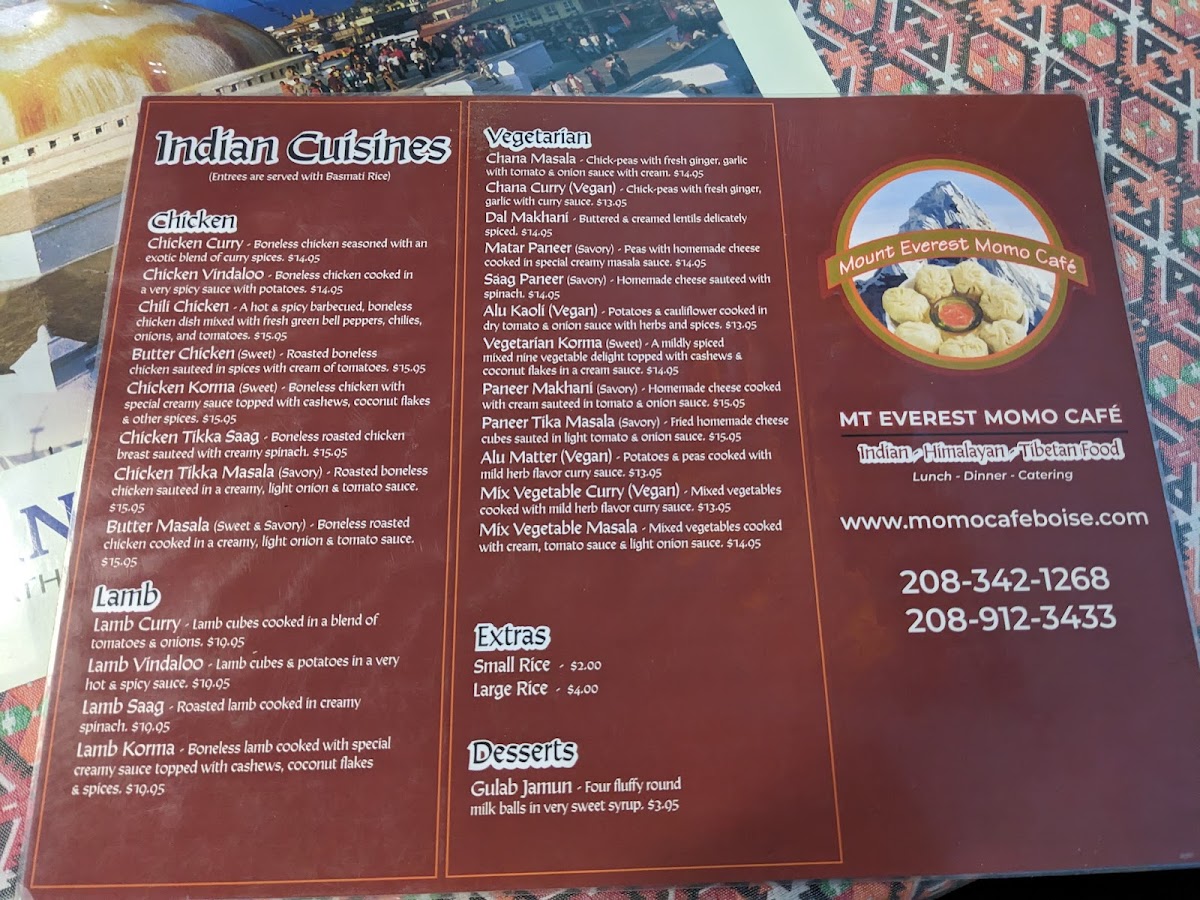 Steamed dumplings filled with ground yak. Served with a mild or spicy tomato sauce.